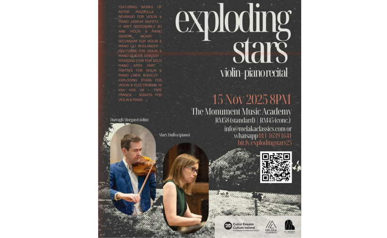 Join internationally renowned violinist Darragh Morgan and acclaimed pianist Mary Dullea for a captivating evening of music in Melaka, featuring a dynamic and diverse programme spanning the late Romantic, 20th-century, and contemporary repertoire.